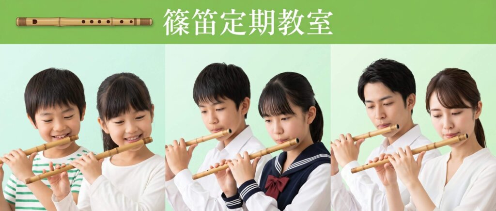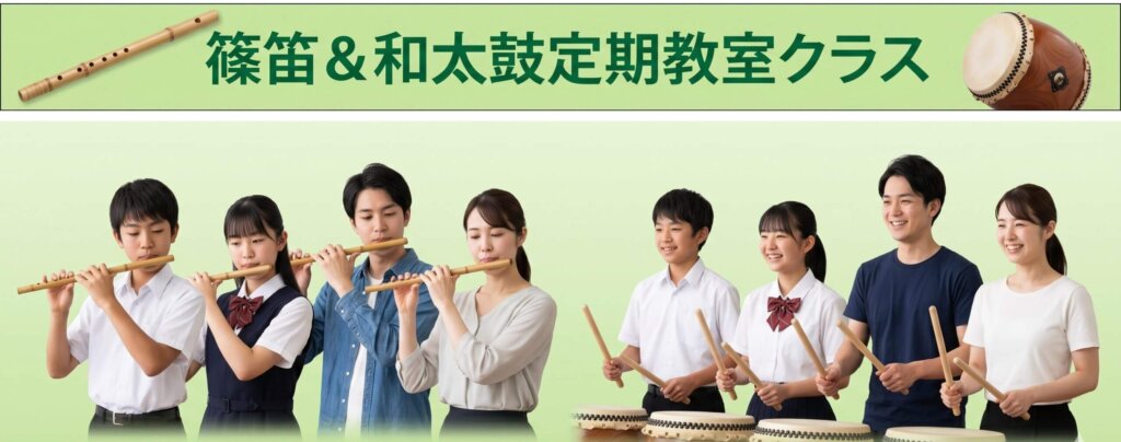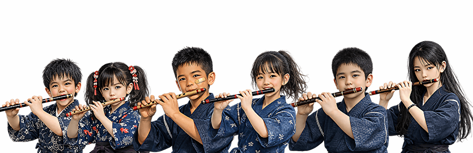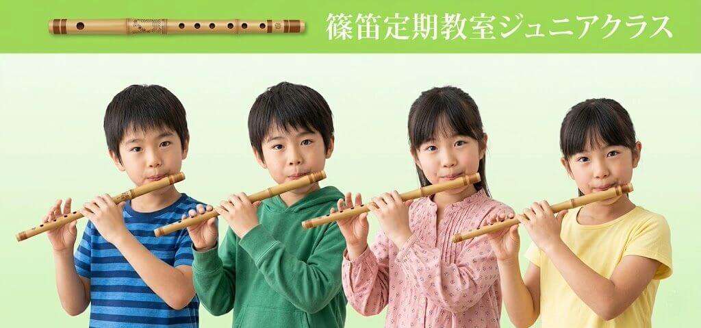 篠笛は初心者や呼吸器系の成長段階の子どもでも音が鳴らしやすいリコーダー式篠笛を使用します。